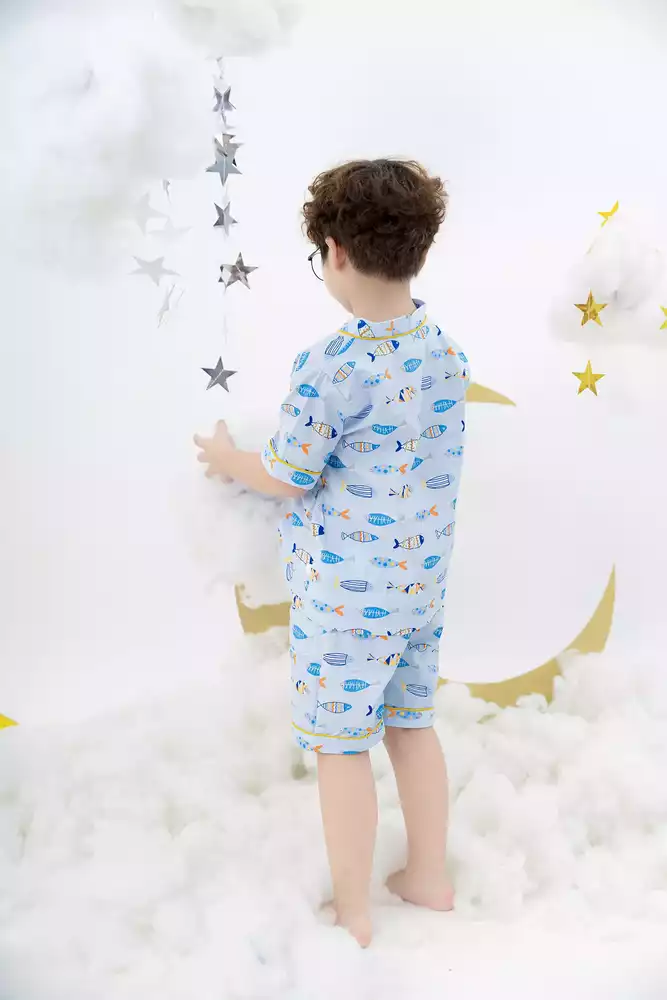 [ Outfit pijama ]Bộ pyzama bé trai cộc tay cổ v