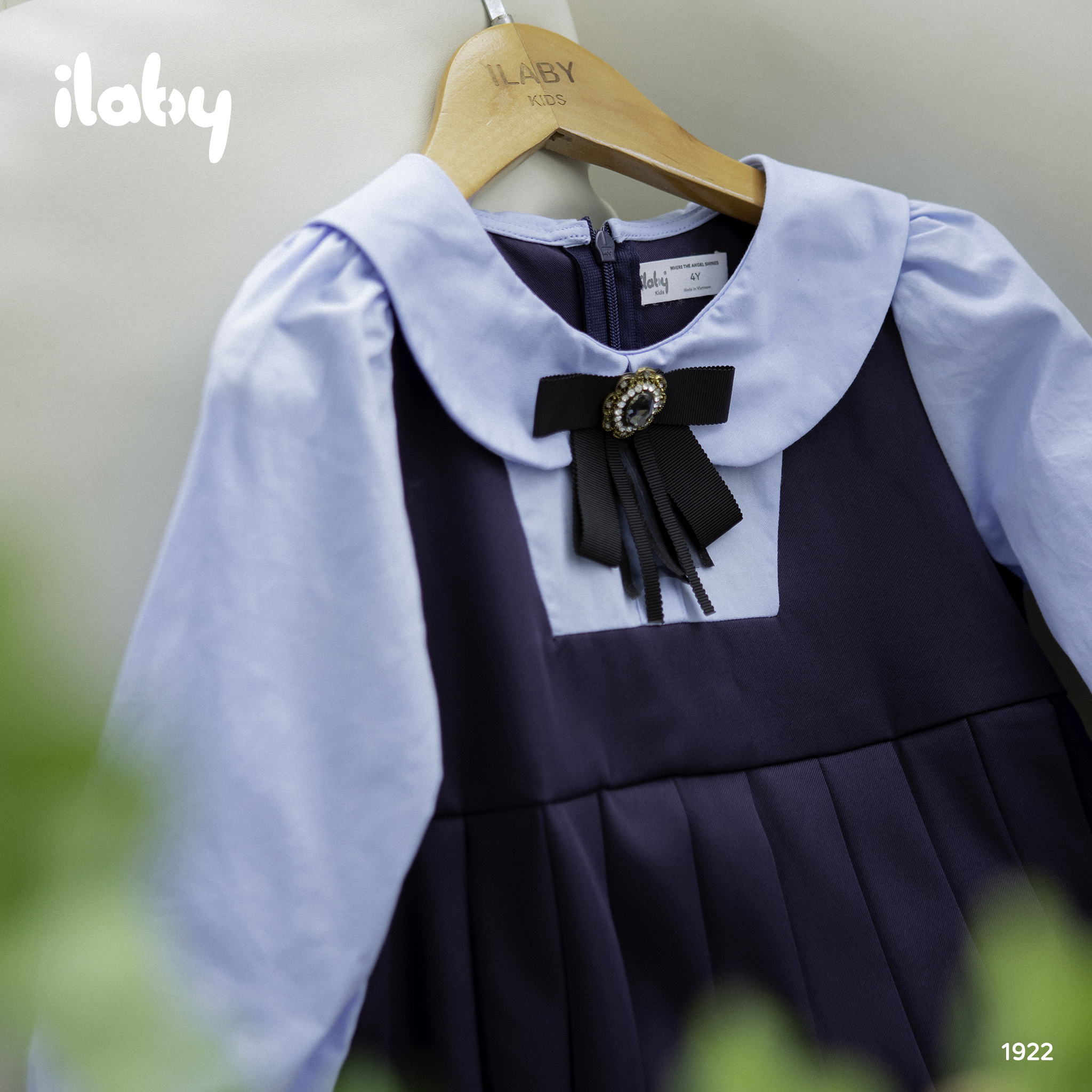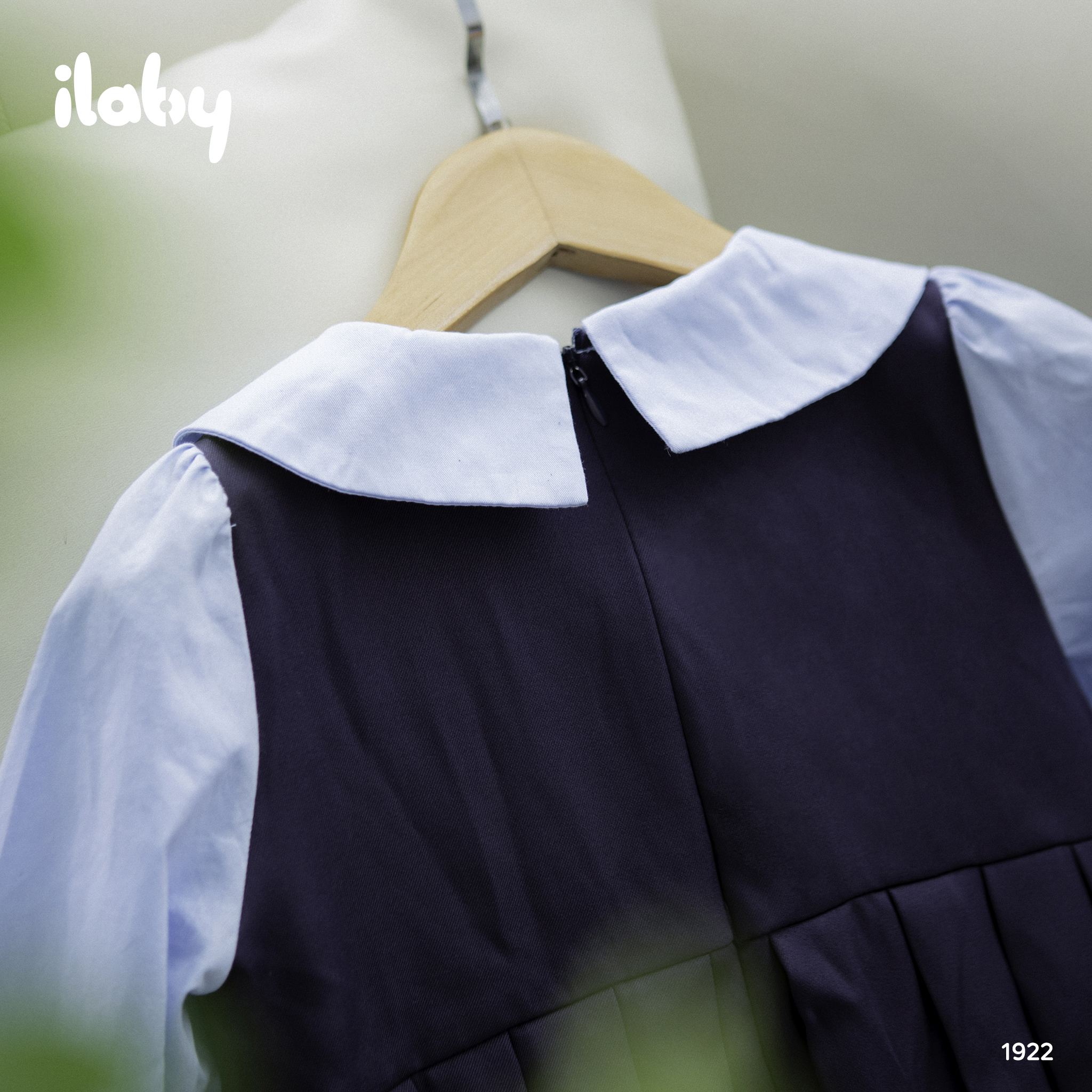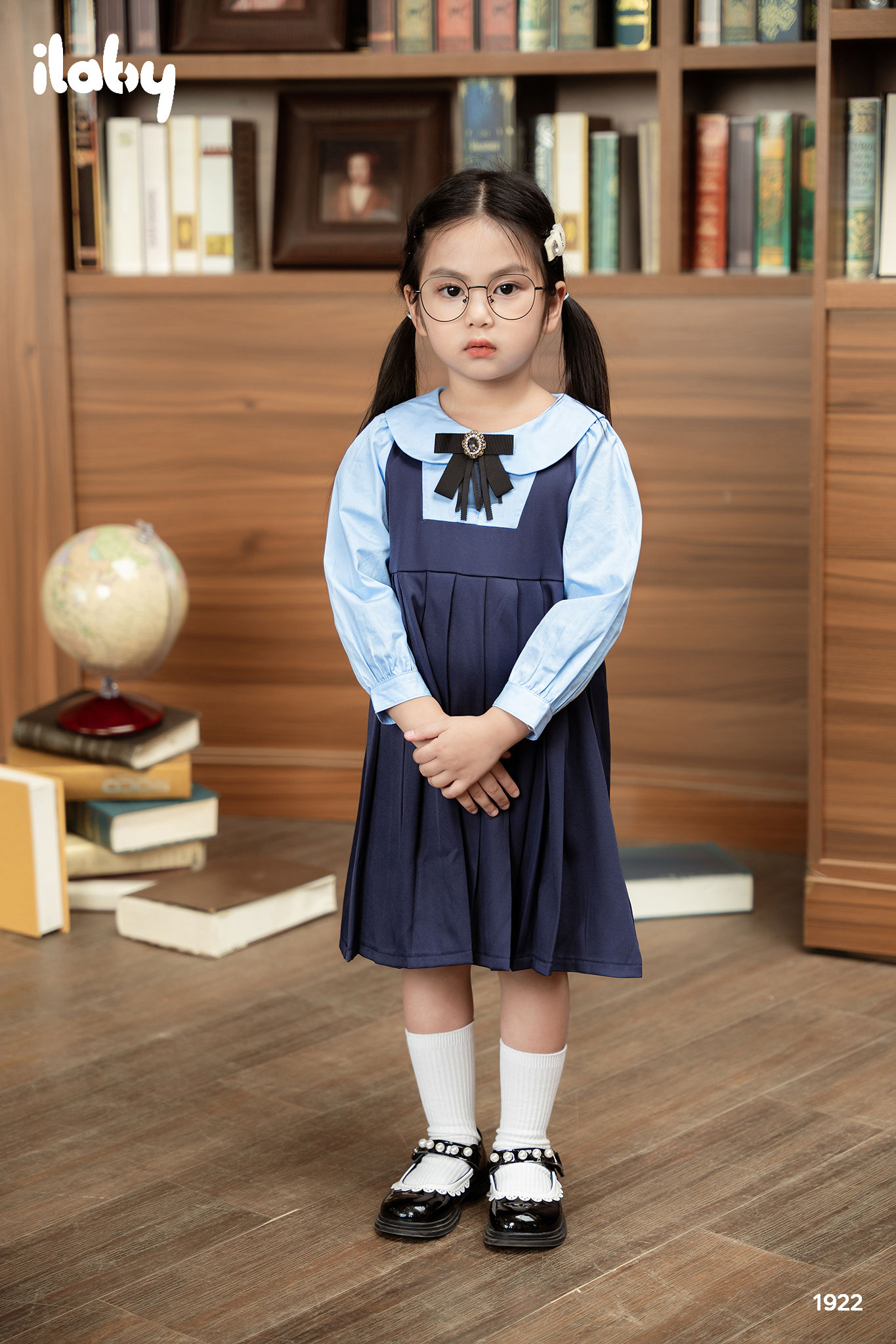 Nổi bật với màu xanh blue mát mắt nhấn nhá hoàn hảo cùng cổ sen nữ tính đem đến phiên bản váy đi học thật hoàn hảo.
