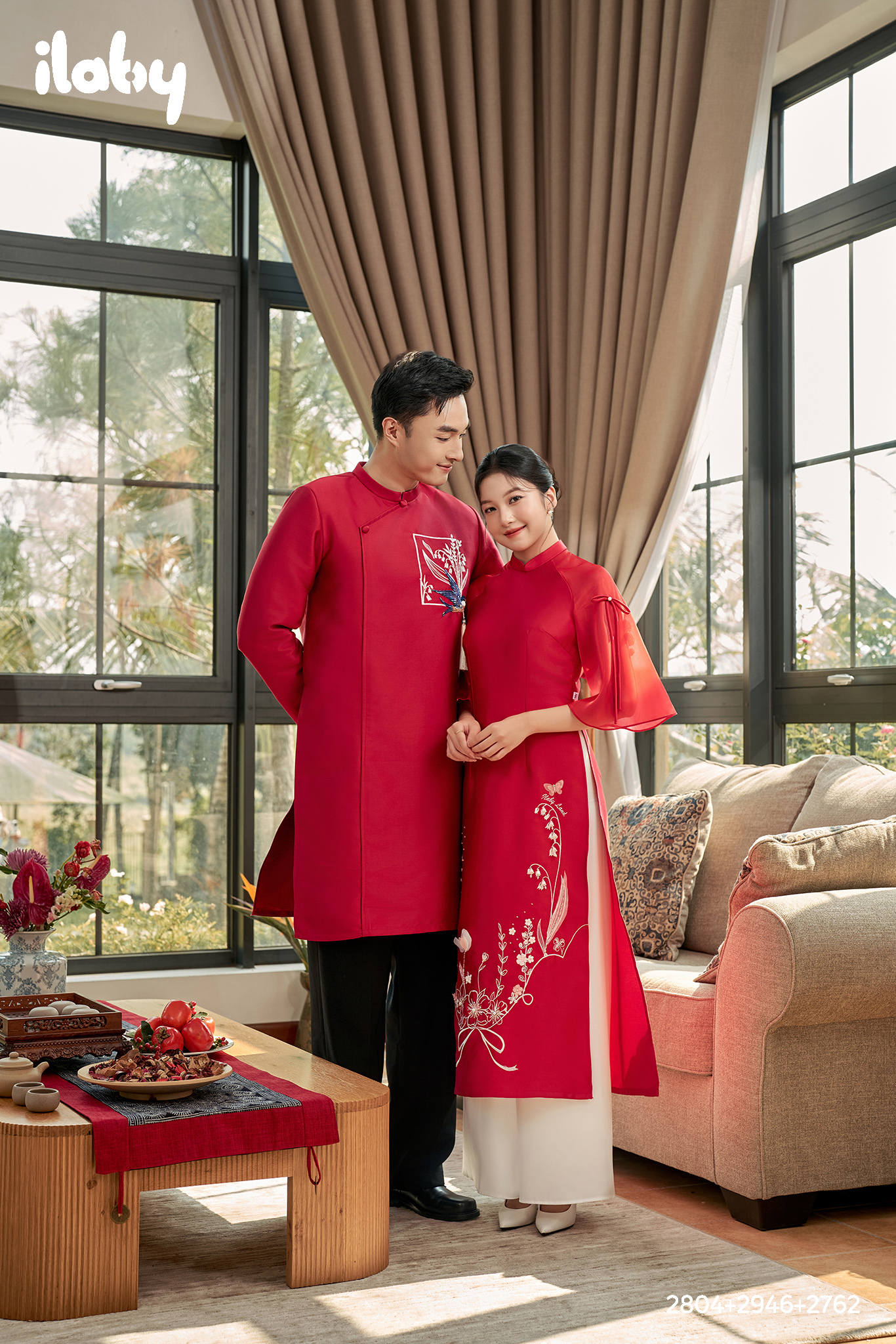 🌸 Họa tiết áo dài nữ: Áo dài mẹ tafta cổ tàu phối tay tơ đính nơ ngọc, thân thêu đính kết trang trí, bên trong lót habuita khóa kéo thân sau