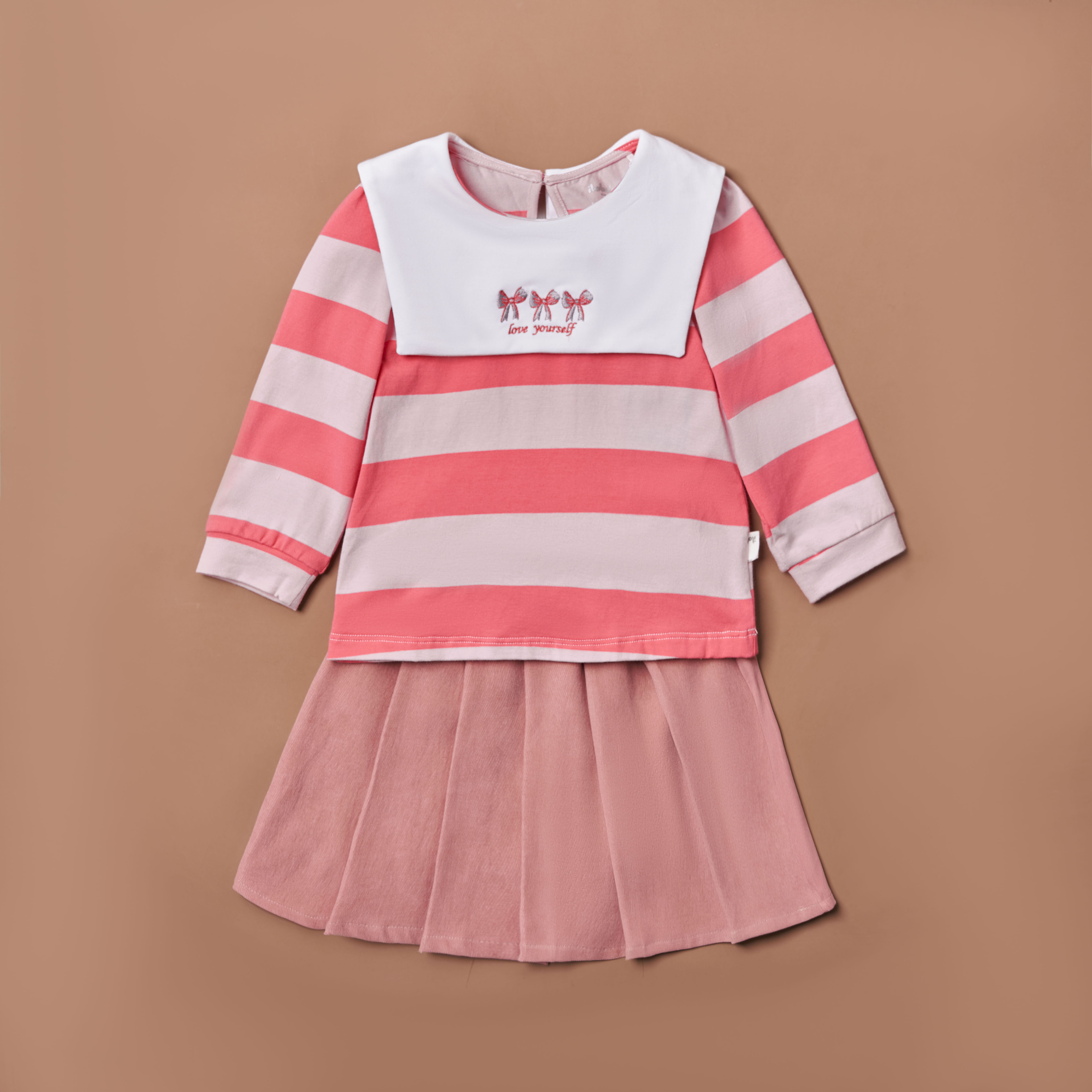 🌷 Tên sản phẩm: Áo thun kẻ cổ phối màu thêu họa tiết bé gái
