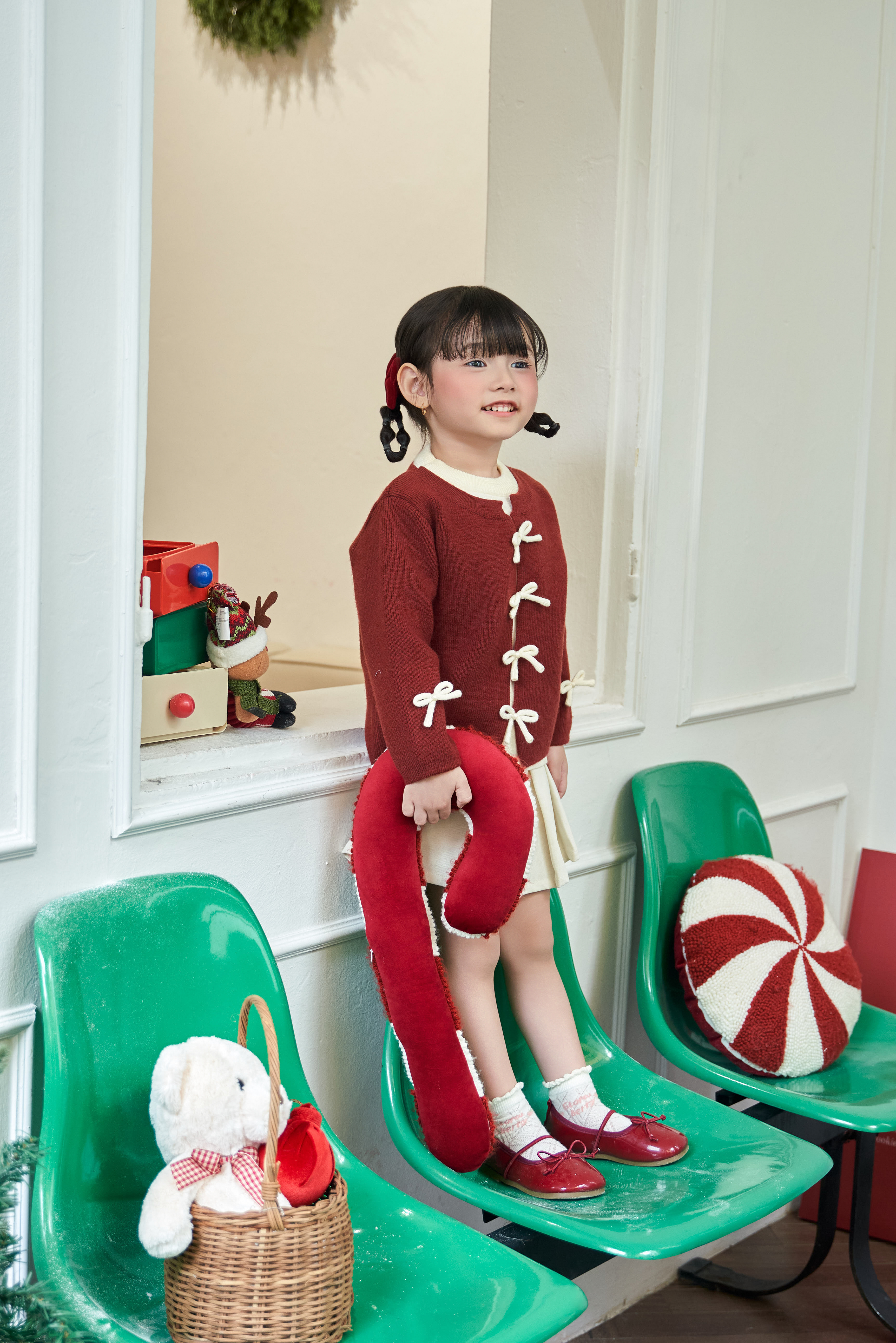 🌸 Họa tiết áo len bé gái: Áo len giả cardigan cho bé gái phong cách vintage đính nơ xinh dễ thương