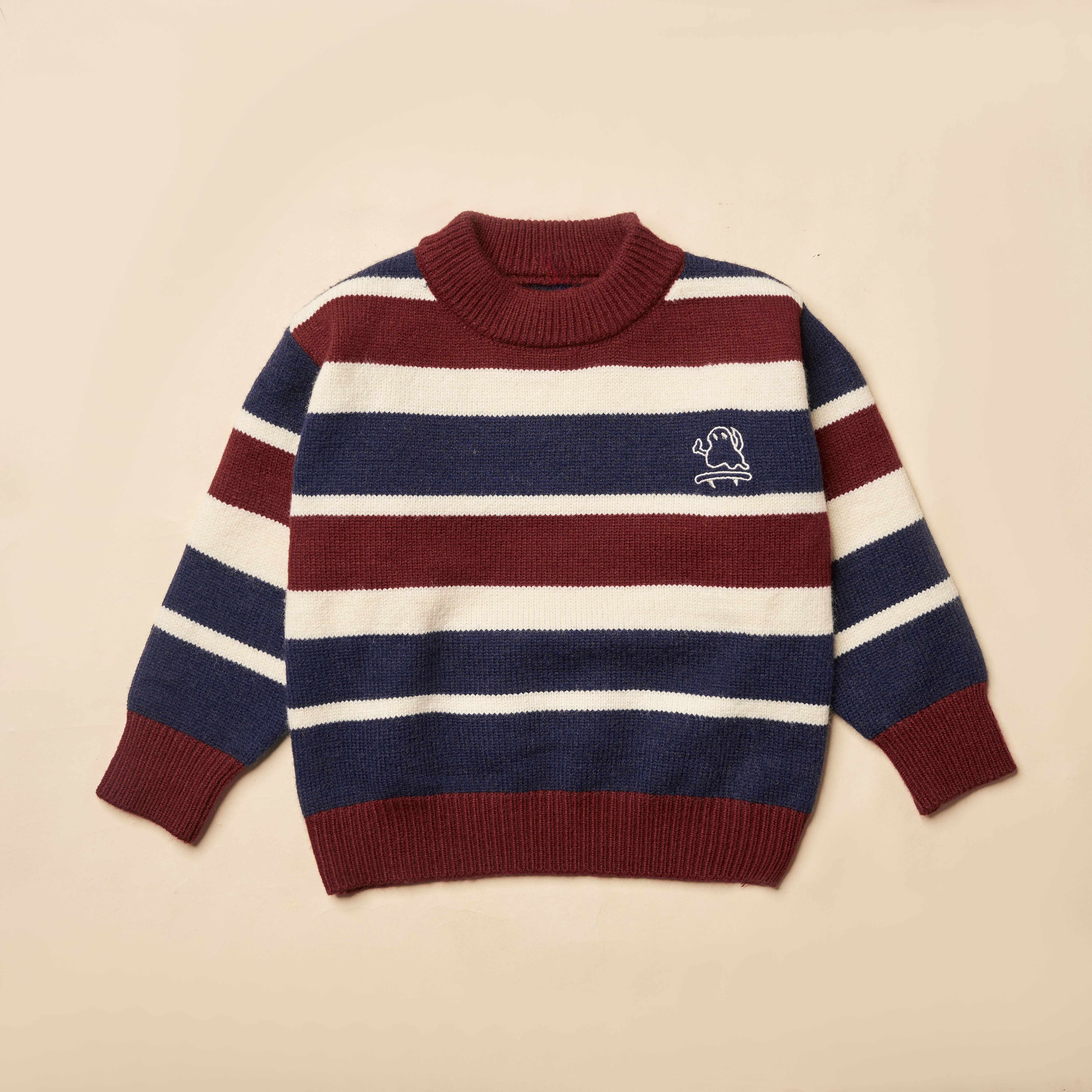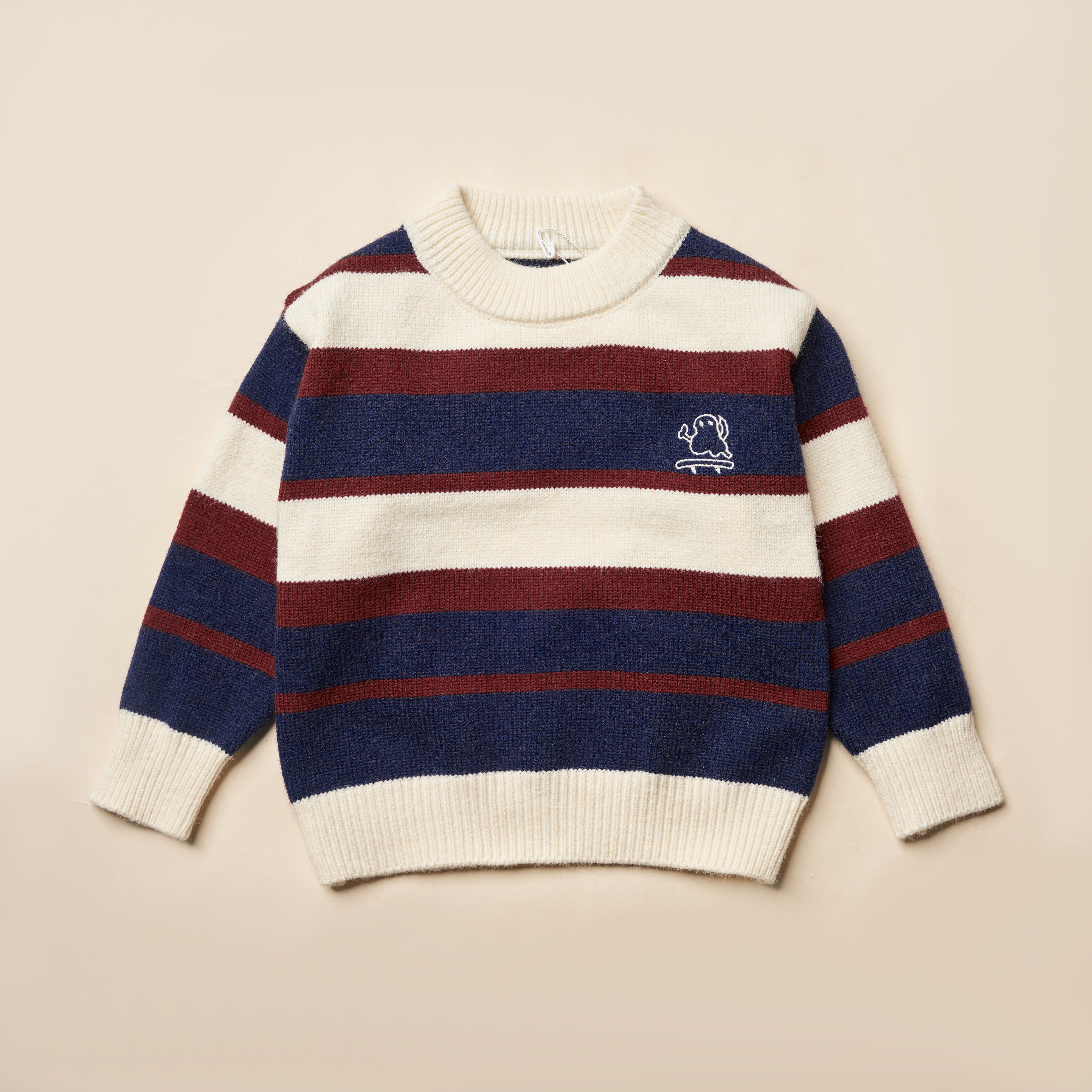 🌸 Họa tiết áo len bé trai: Áo len chui đầu kẻ ngang phối màu. viền bo đồng màu