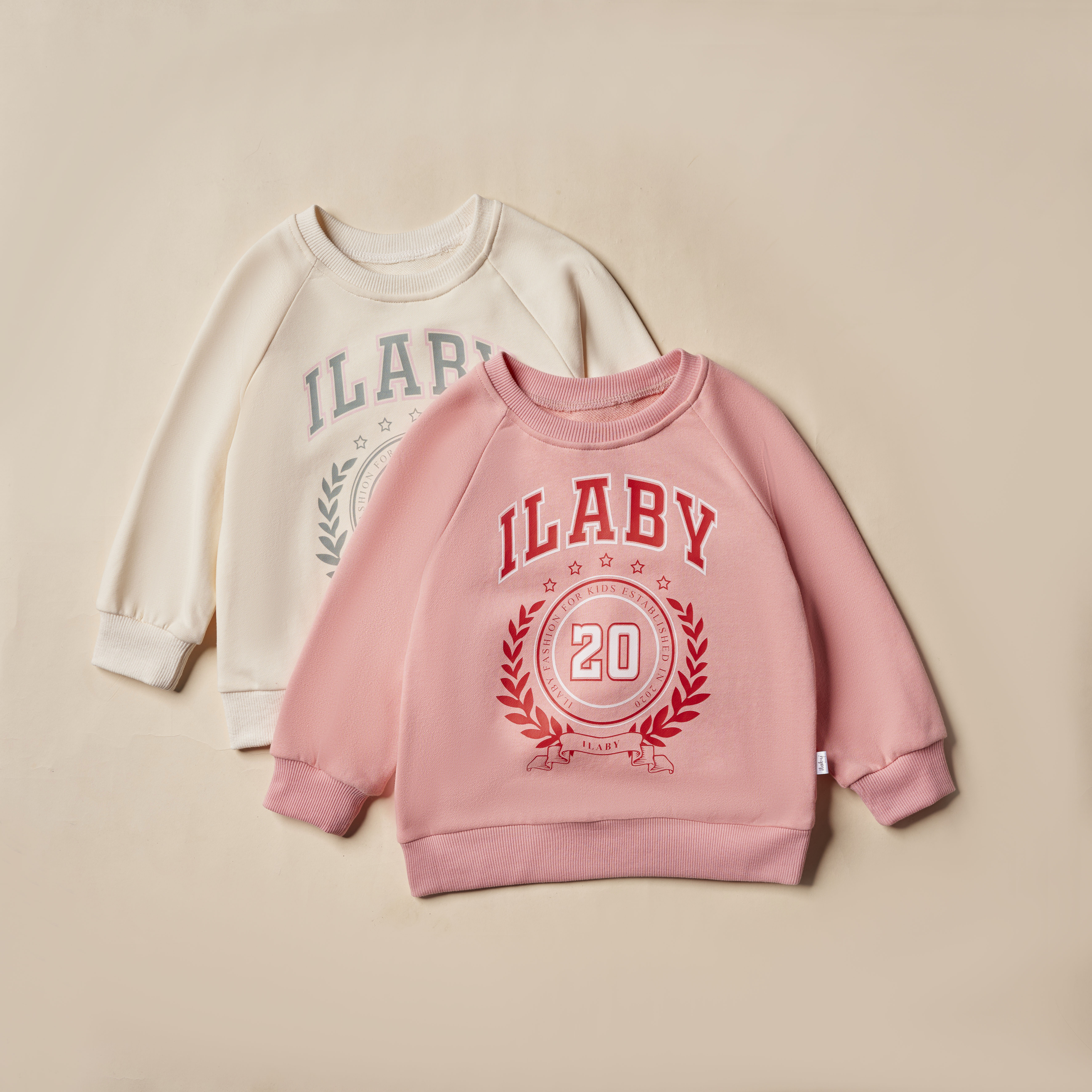 🌸 Họa tiết áo nỉ cho bé gái: Áo nỉ dài tay in hình và chữ ILABY. Viền bo.