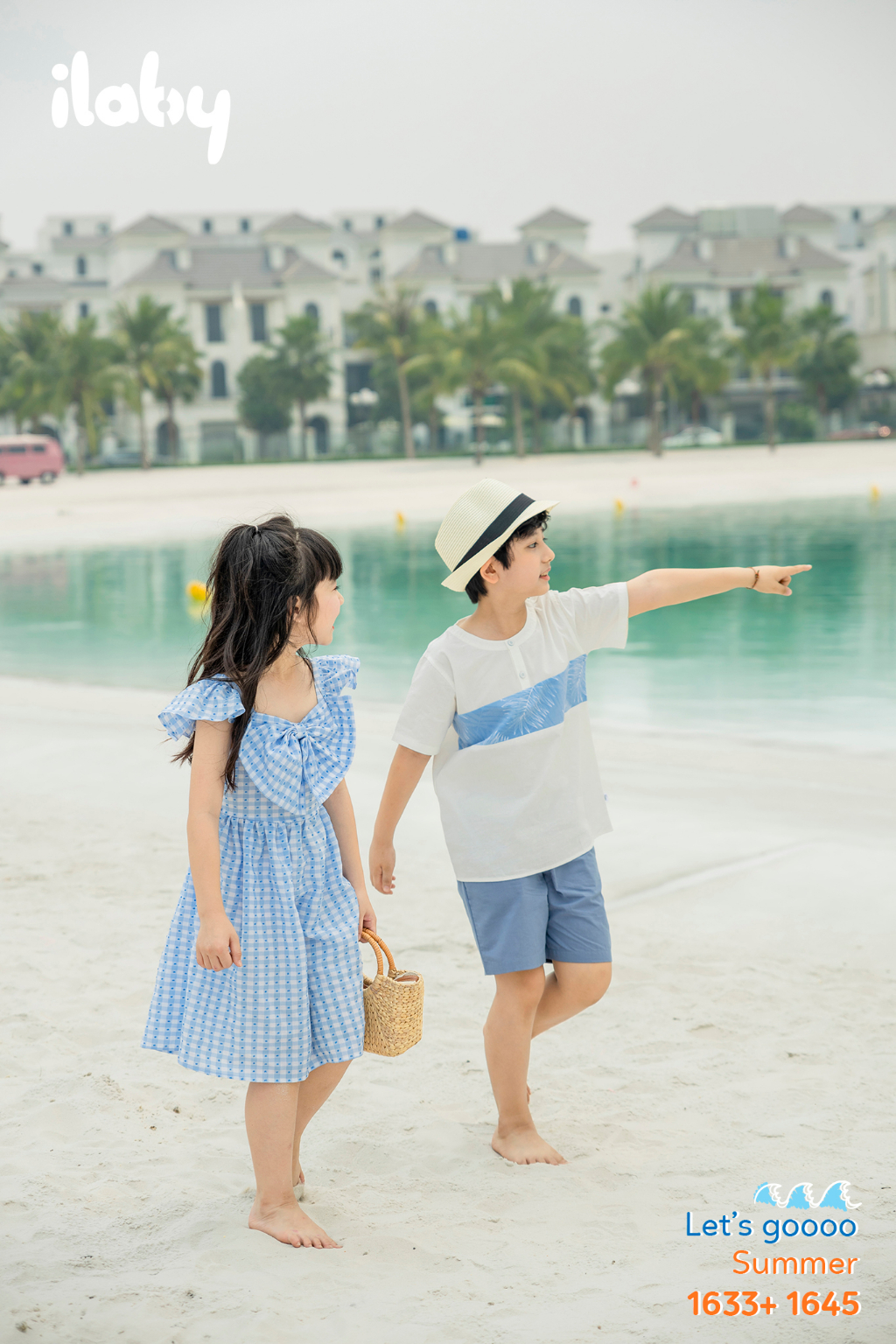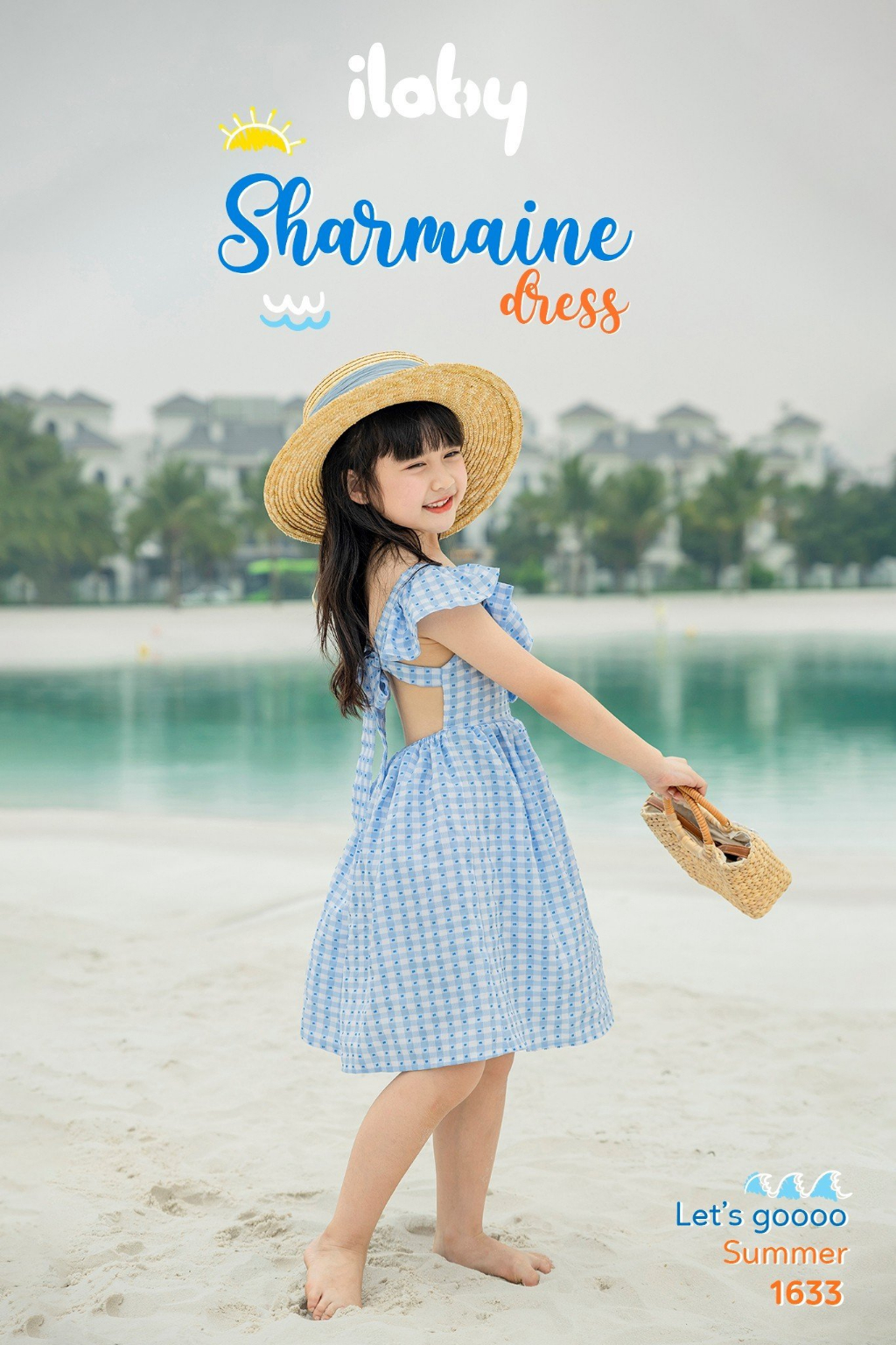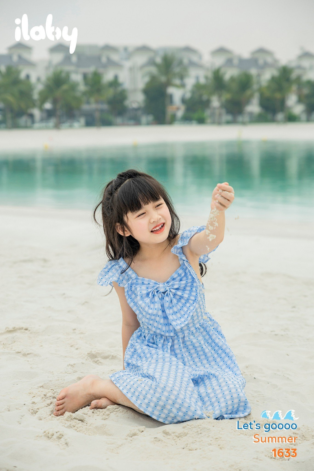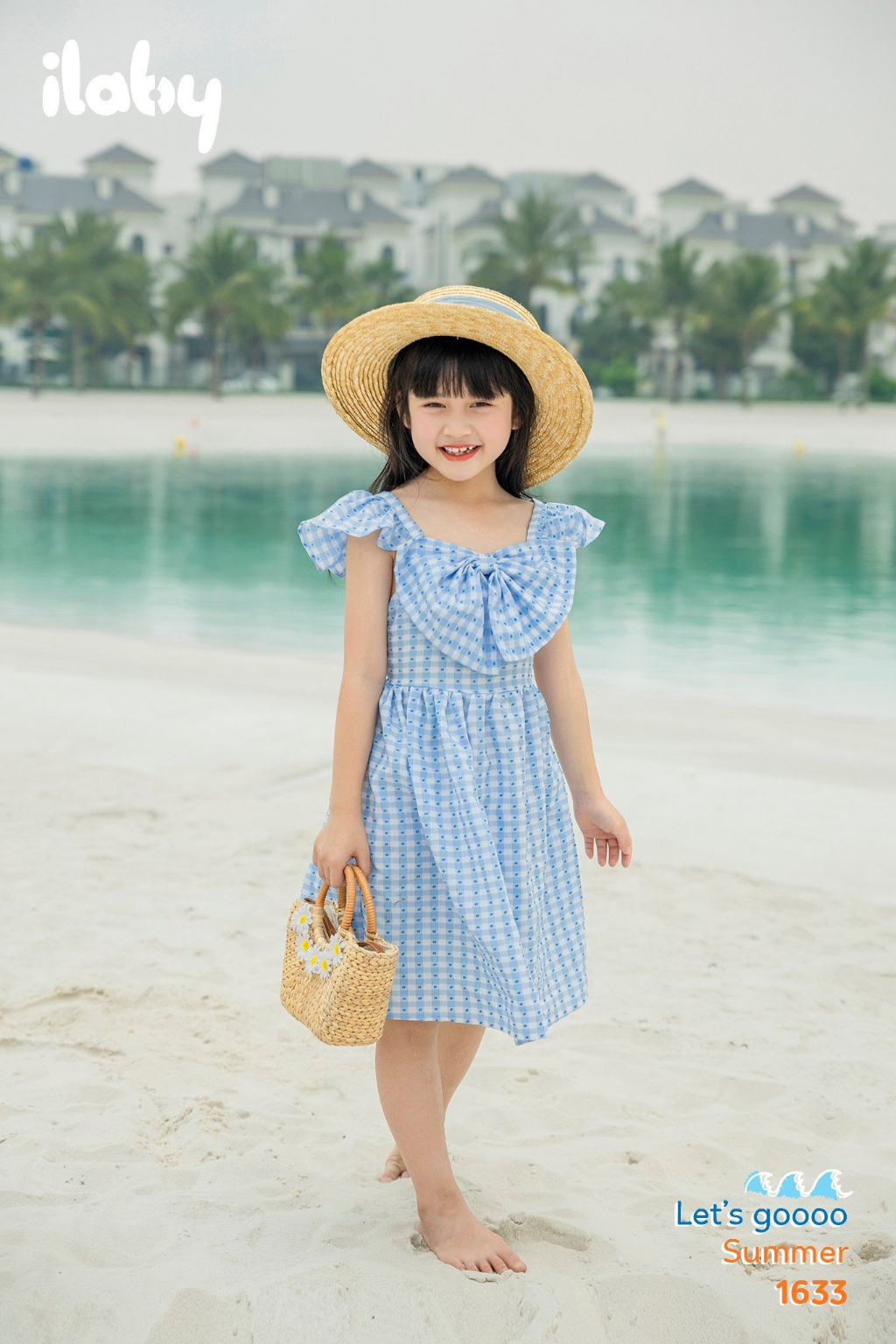 ILaby - Nơi thiên thần tỏa sáng - Đầm hai dây bé gái ILABY nơ ngực chất liệu thô kẻ mềm mại thấm hút mồ hôi cho bé 2-11 tuổi