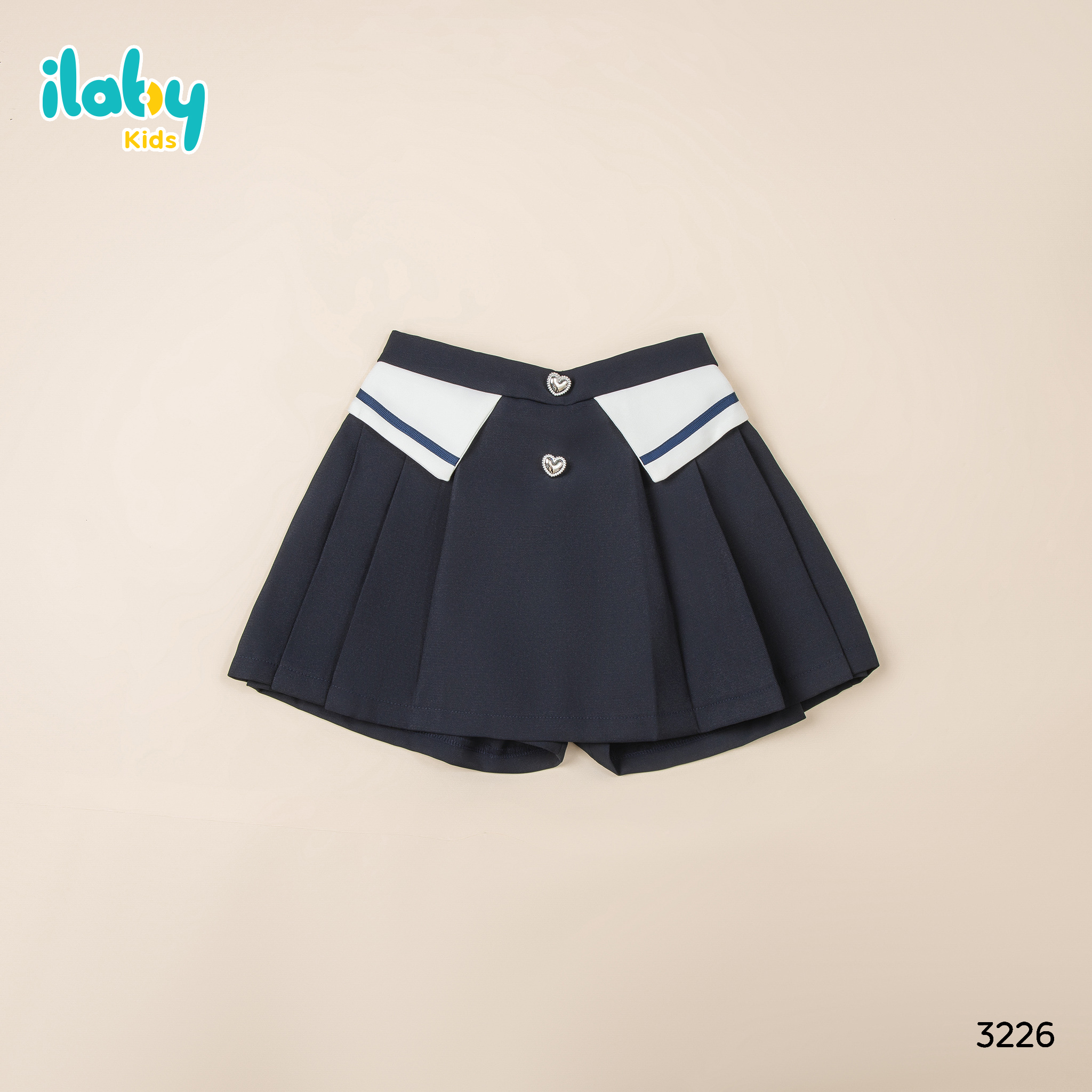 ✨ Quần giả váy bé gái ILABY mã 3226 thiết kế xếp ly cách điệu, tone xanh navy sang trọng kết hợp chi tiết phối trắng tinh tế ở phần cạp. Phom váy xòe nhẹ nhưng bên trong là quần short an toàn, giúp bé thoải mái khi vận động. Kiểu dáng thời trang, lý tưởng mặc đi học, đi chơi hay tham gia các hoạt động ngoại khóa.