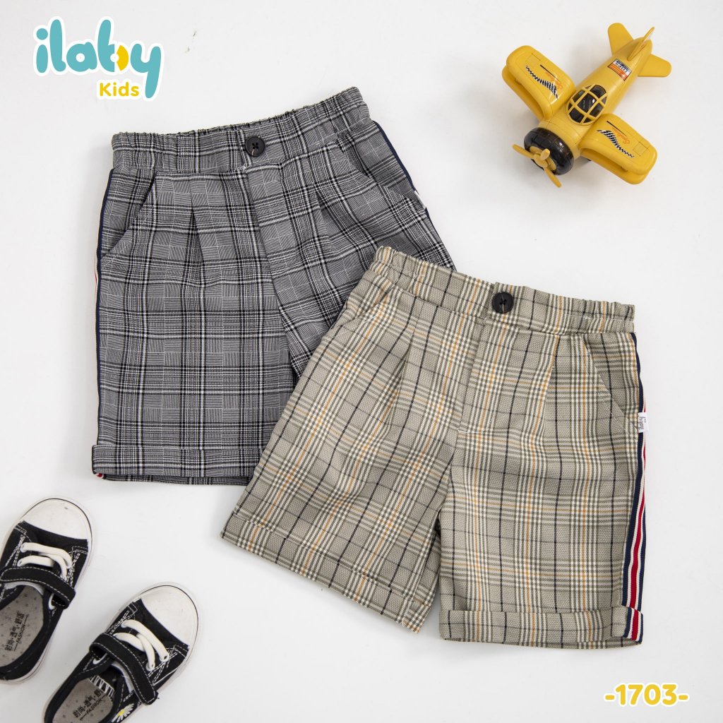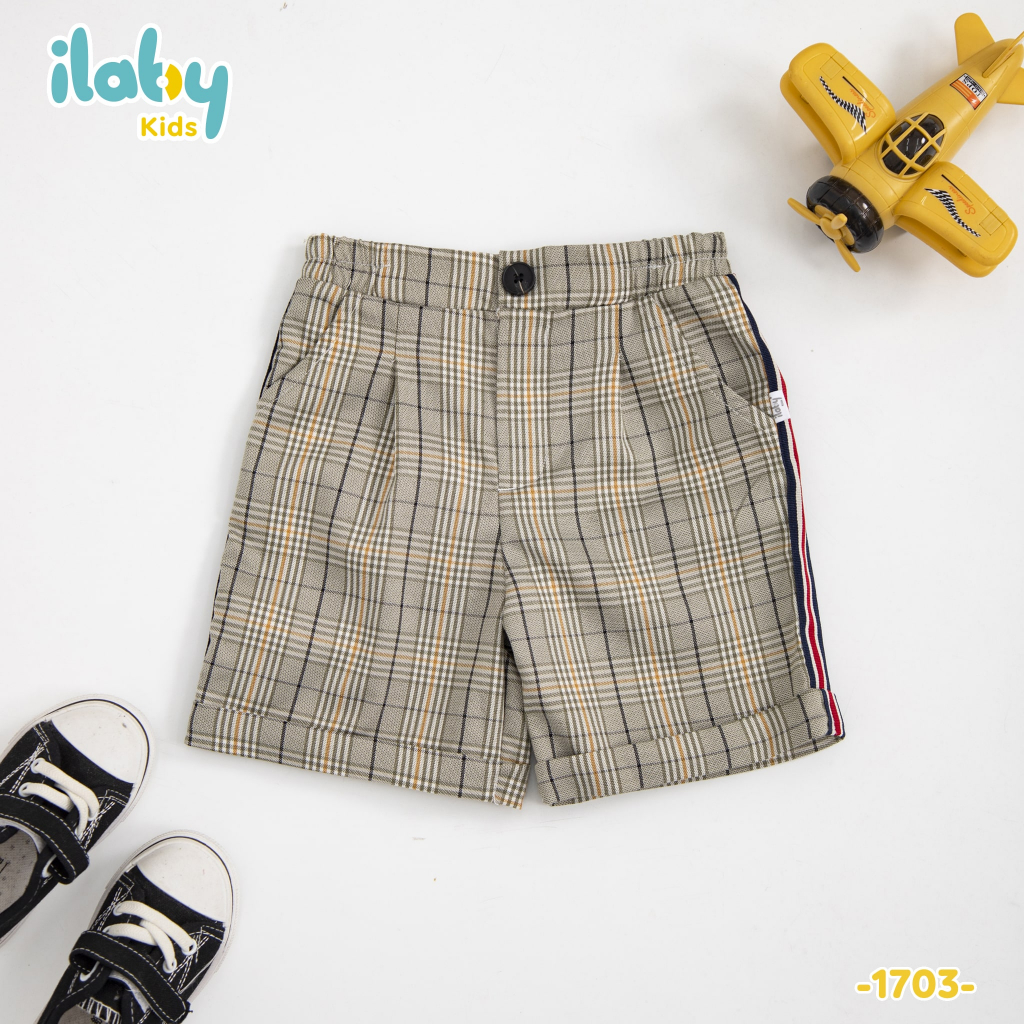 ILaby - Nơi thiên thần tỏa sáng - Quần lửng bé trai ILABY kẻ phối dây hai bên chất liệu tuysi mềm thấm hút mồ hôi cho bé 2-11 tuổi