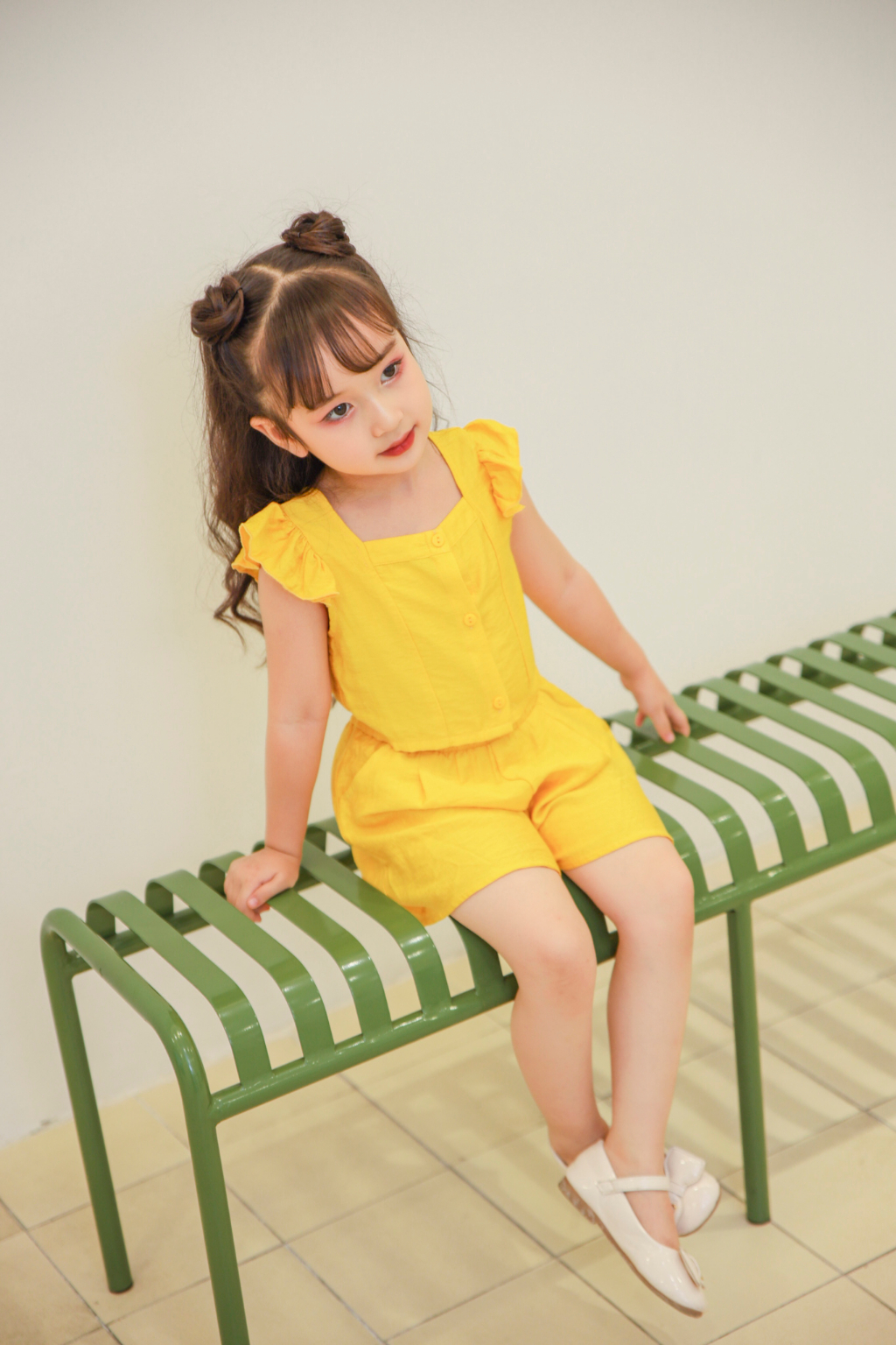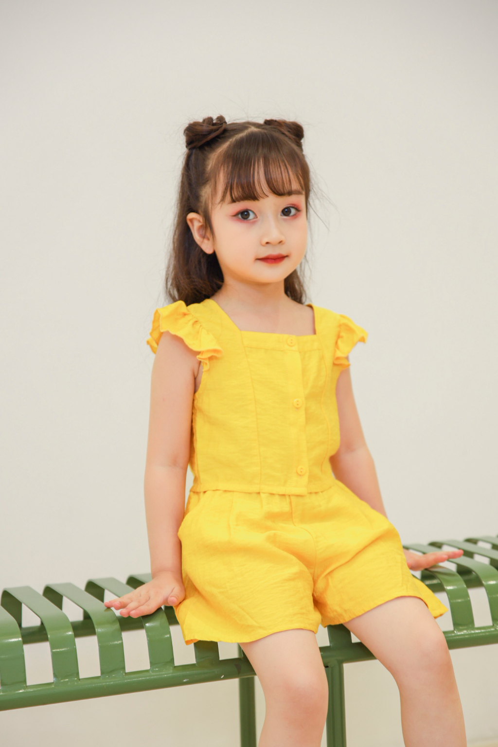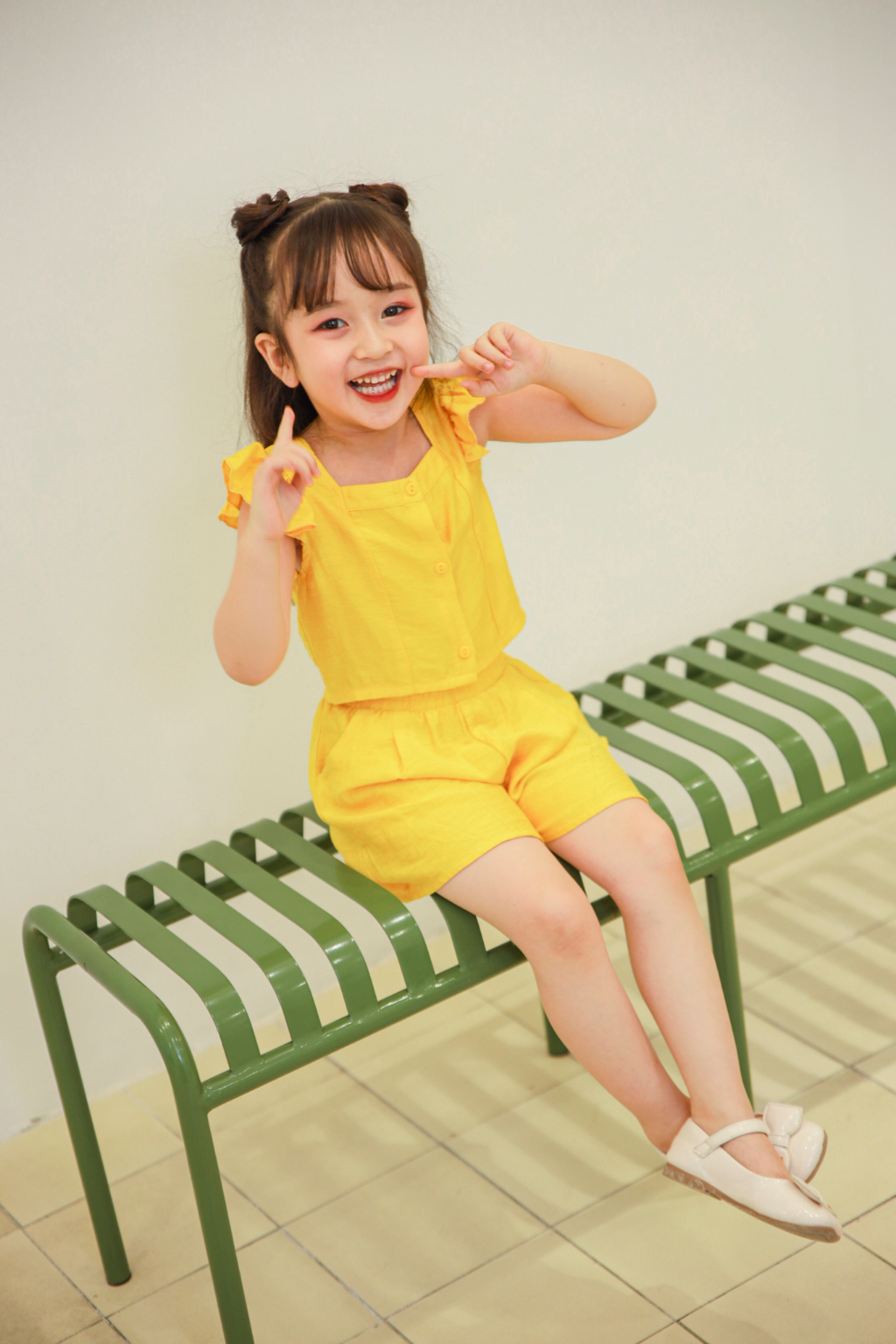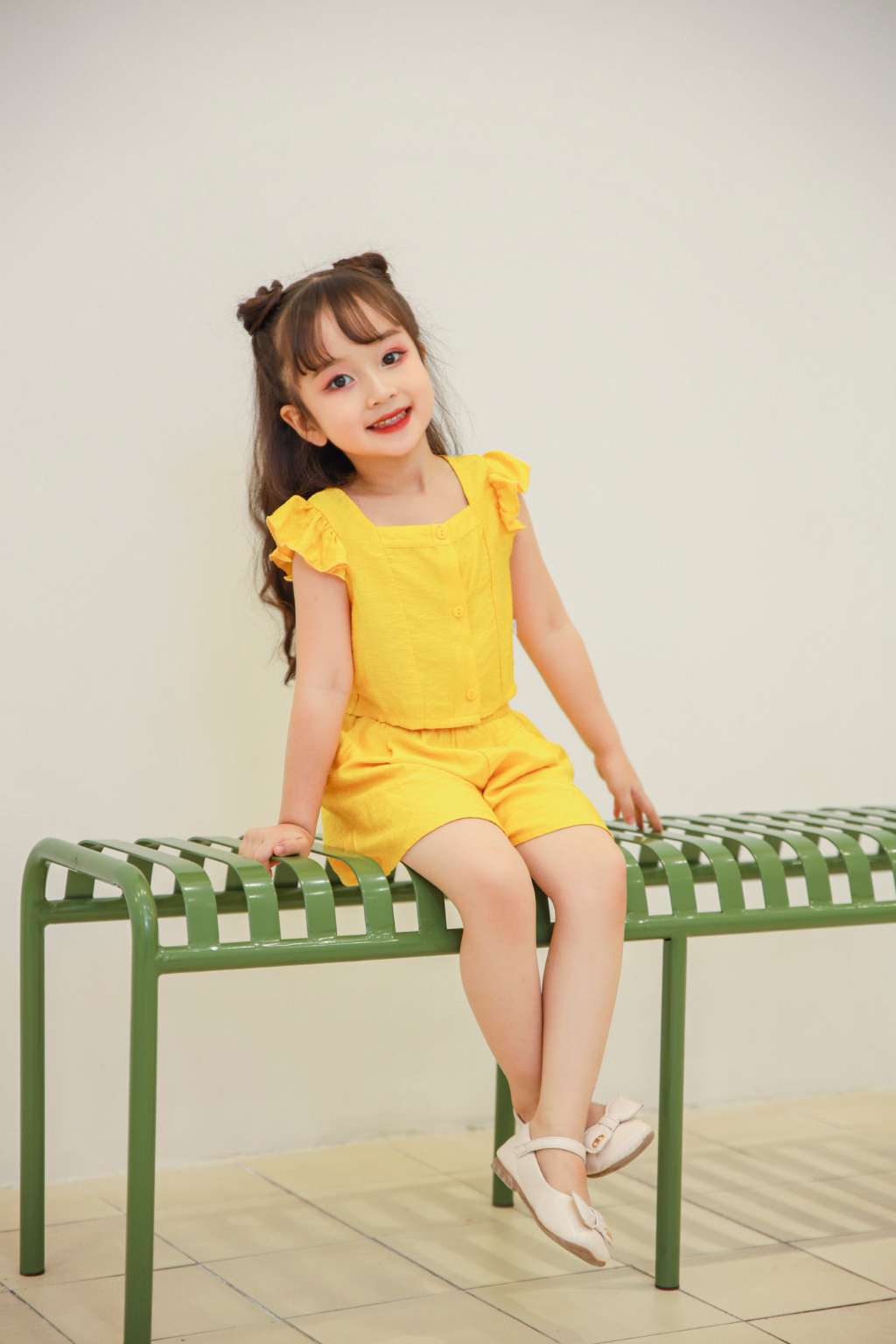 ILaby - Nơi thiên thần tỏa sáng - Set đồ bộ bé gái ILABY đũi áo croptop tay cánh tiên chất liệu đũi thoáng mát thấm hút mồ hôi