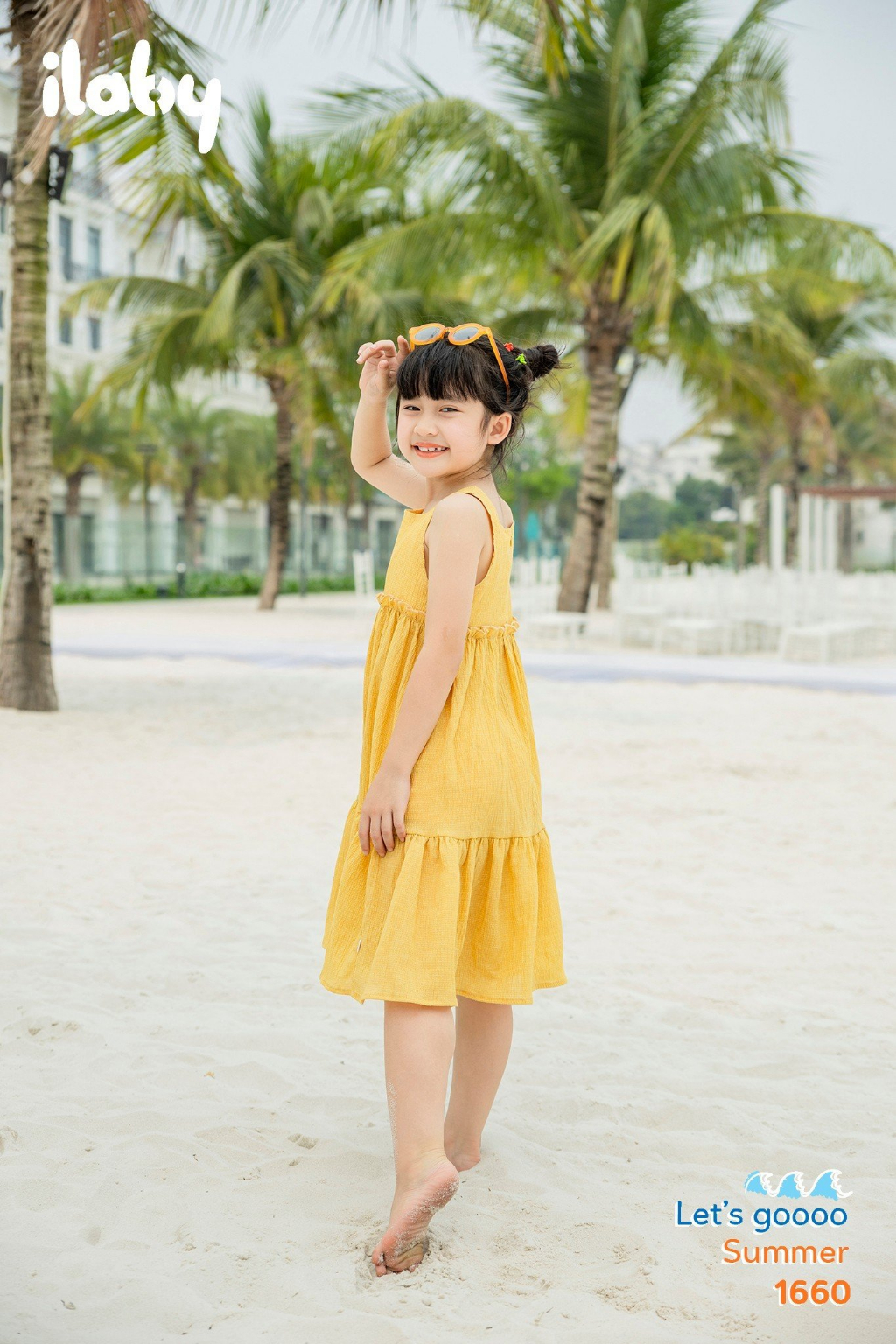 ILaby - Nơi thiên thần tỏa sáng - Váy maxi đi biển bé gái ILABY cổ vuông nẹp giả chất liệu đũi xốp mềm mại thấm hút mồ hôi cho bé 2-11 tuổi