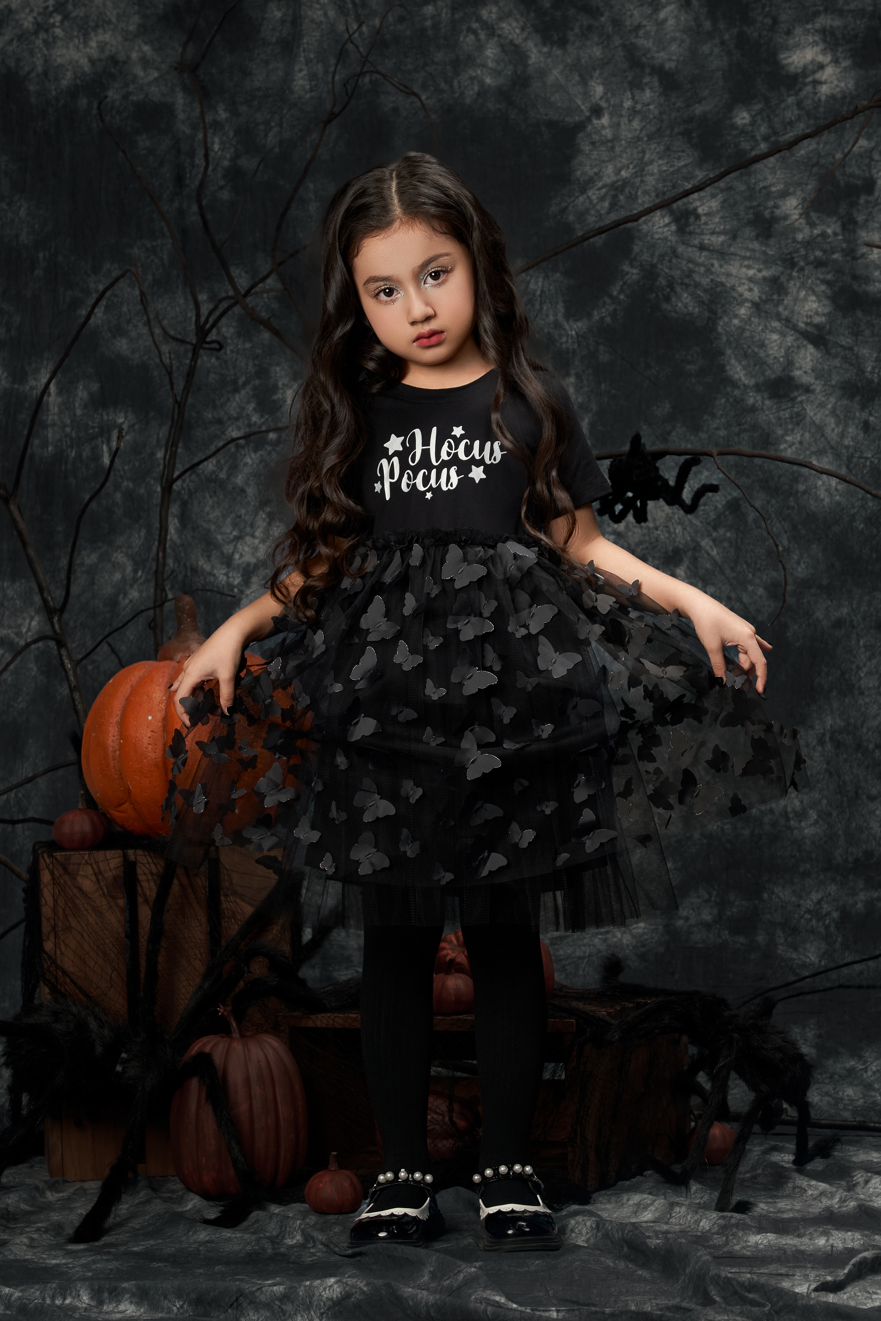 🌟 Họa tiết: Váy thun cộc tay phối tùng dưới tutu hồ điệp 3D nổi, bên trong có 1 lớp tutu đen trơn. In hình thân trước ngực