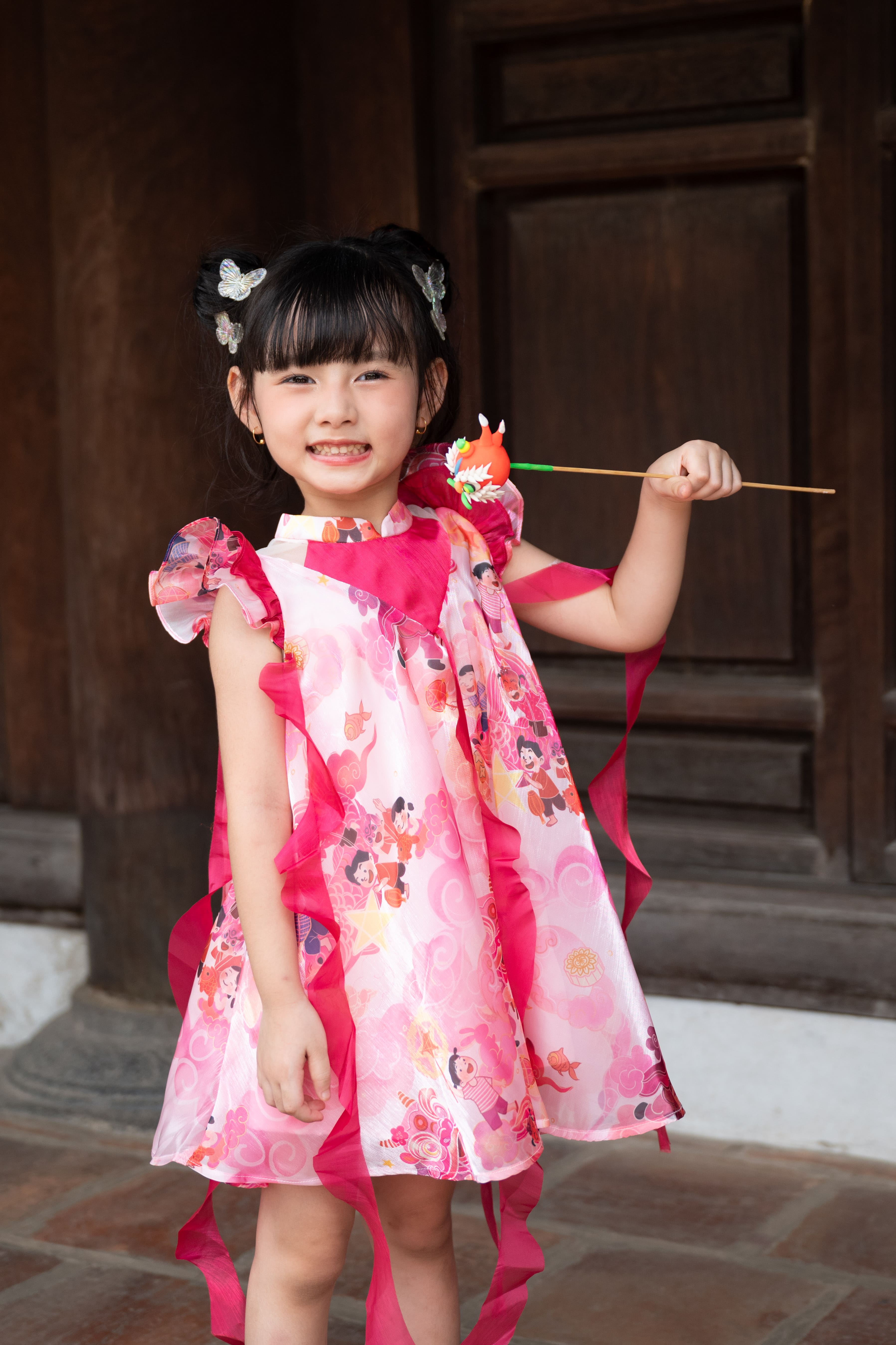🎋 Váy tơ lụa ILABY bé gái GIÁNG HỒNG mang sắc hồng ngọt ngào, dịu dàng nhưng vẫn nổi bật, lấy cảm hứng từ không khí Trung Thu ấm áp và nét đáng yêu của bé. Thiết kế tinh tế giúp bé tỏa sáng trong các dịp lễ hội, tiệc gia đình hoặc Tết.