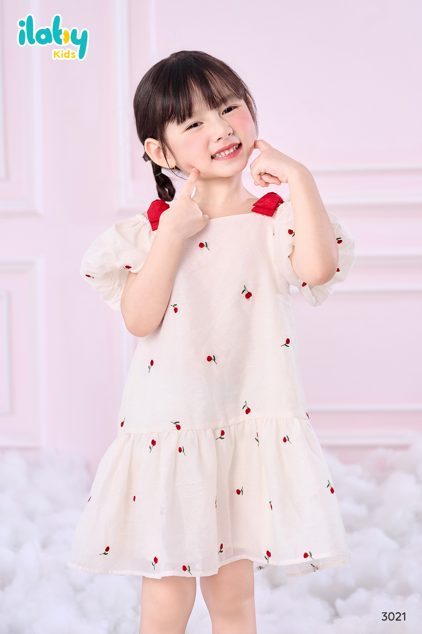 🎀 Họa tiết nổi bật váy cho bé gái: Váy tơ 2 lớp có lót trong habutai, Bản vai 2 bên có phối nơ, kéo khóa giọt lệ thân sau. Váy A nhún đuôi cá bồng phần dưới